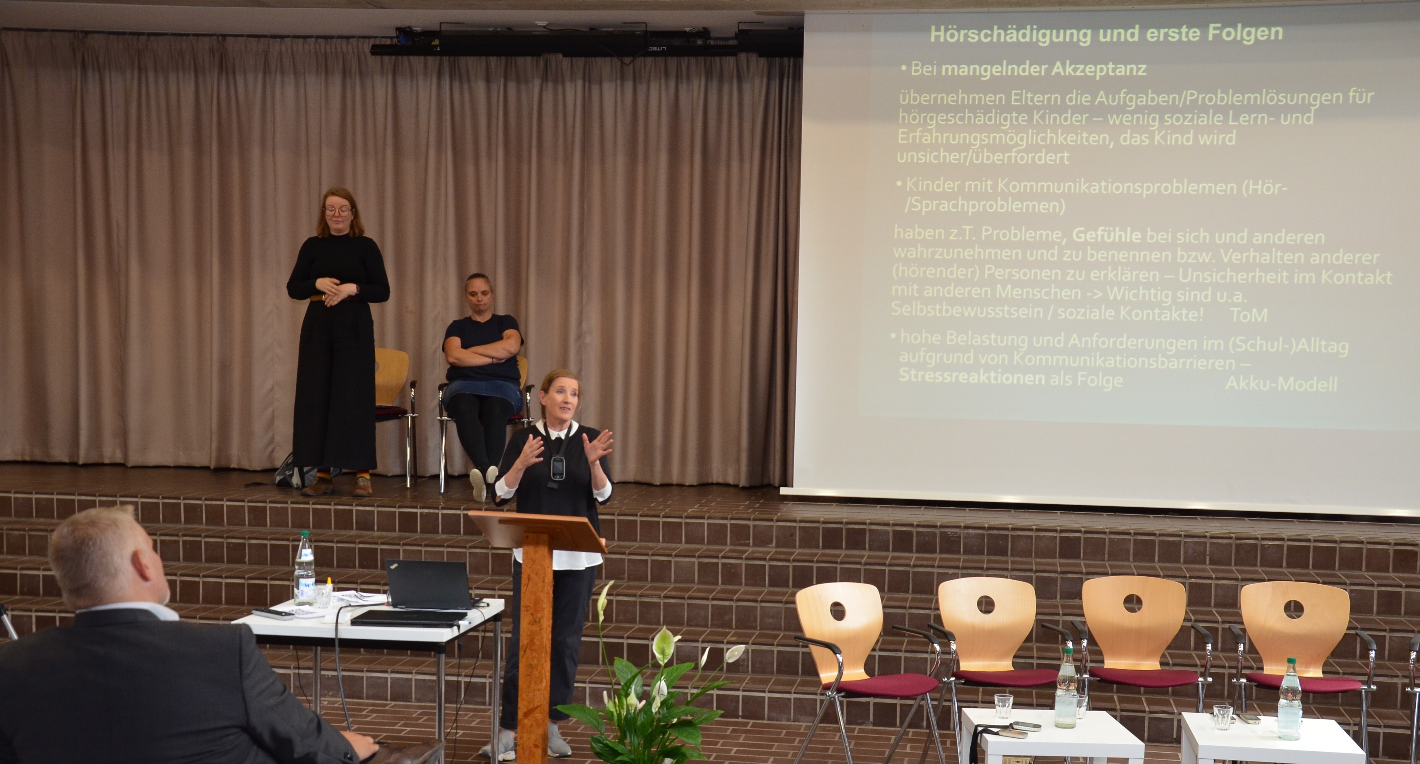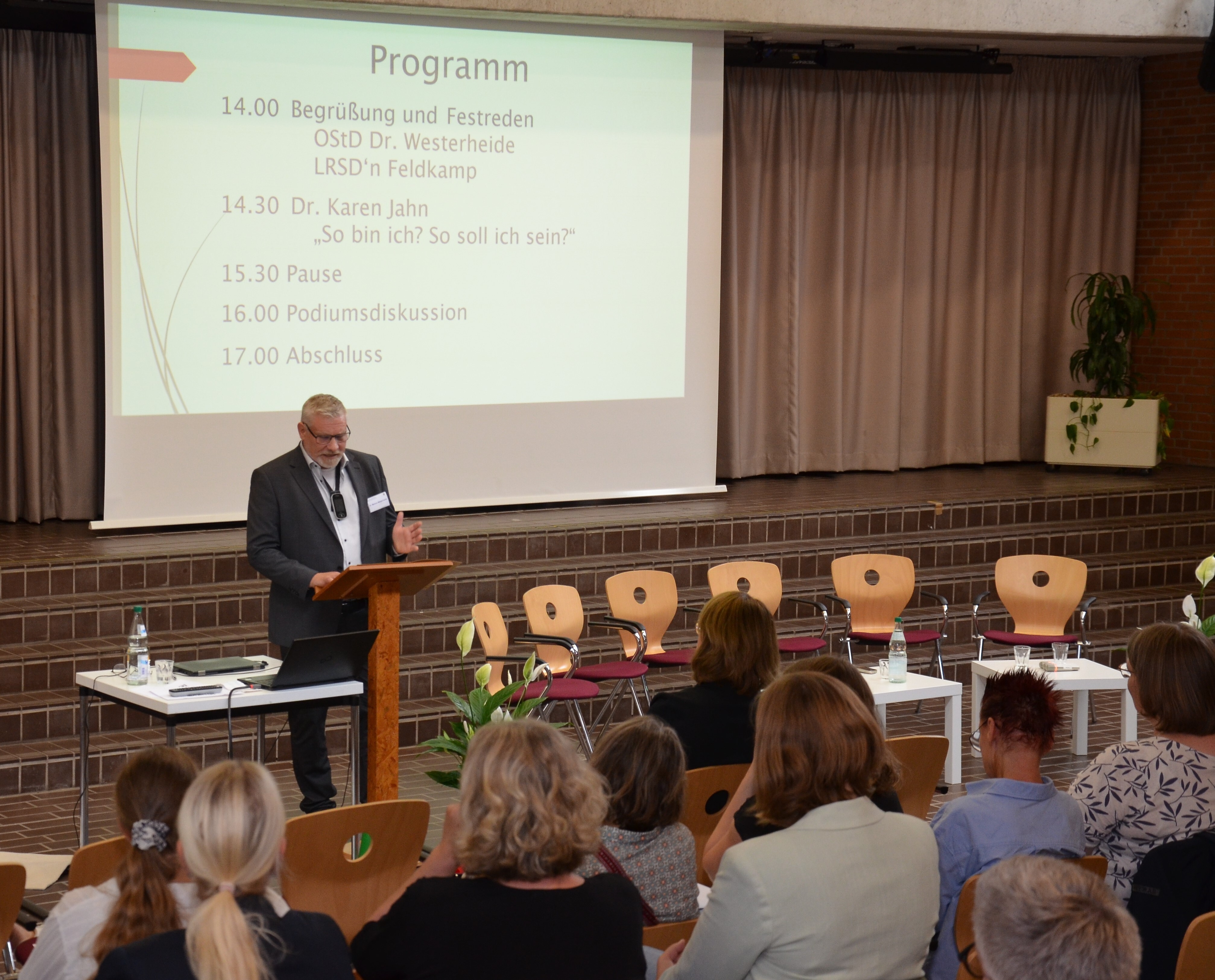 Am 09. September feierte der Mobile Dienst sein 25-jähriges Jubiläum. Rund 80 Gäste aus verschiedensten Bereichen – Schule, Pädakustik, Medizin – begleiteten uns durch den Nachmittag, an dem die Diplom-Psychologin Dr. Karen Jahn sehr lebhaft und anschaulich über die Selbst- und Fremdwahrnehmung von hörgeschädigten Kindern und Jugendlichen referierte. Abgerundet wurde der Nachmittag von einer Podiumsdiskussion mit betroffenen Schülerinnen, der Inklusionsbeauftragten des Gymnasiums Oesede sowie einem Elternpaar. Bemerkenswert offen benannten die TeilnehmerInnen die noch vorhandenen Probleme in der schulischen Inklusion, zeigten aber auch Lösungsansätze auf.