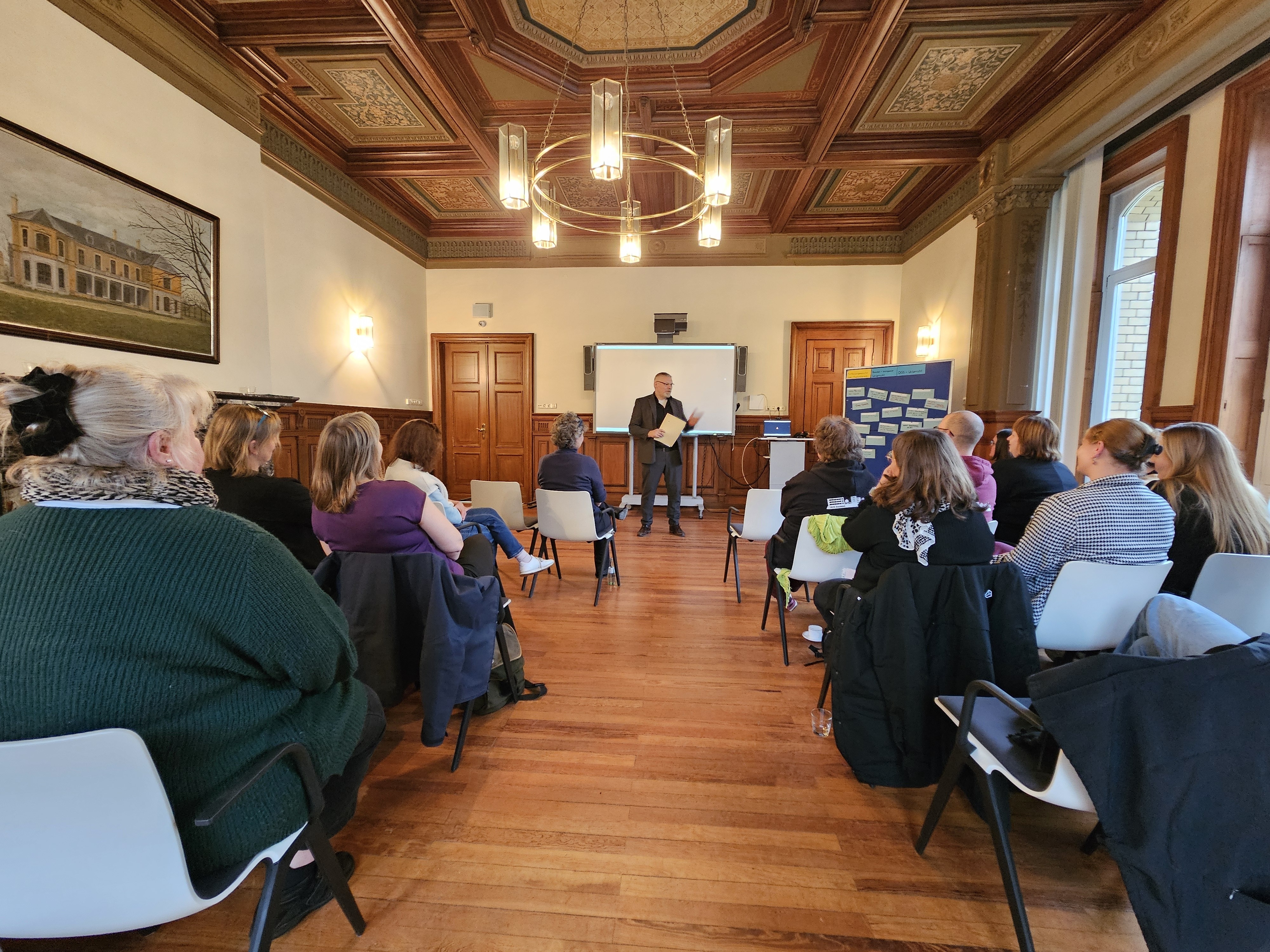 Dabei erwarben sie sehr umfangreiche theoretische und praktische Kenntnisse zu dem Themenfeld der DGS, mit dem Ziel, in den Landesbildungszentren bimodal-bilingualen Unterricht zu erteilen. Nachdem alle TeilnehmerInnen diverse Leistungsnachweise erfolgreich erbracht hatten, konnten sie nun in einer Feierstunde am LBZH BS ihre Zertifikate, überreicht durch Herrn Dr. Markus Westerheide, der die Fachaufsicht über die Qualifikationsmaßnahme hatte, entgegennehmen. Die Veranstaltung wurde durch einen Vortrag von Frau Prof. Dr. Claudia Becker, Humboldt-Universität zu Berlin, einer Zusammenfassung der Maßnahme durch Frau Ina Barrenpohl-Förster (Pädagogische Leitung der Qualifizierung) und einem Grußwort der stellvertretenden Präsidentin des Niedersächsischen Landesamtes für Soziales, Jugend und Familie (LS) bereichert. Persönlich vertreten wurde das LS, das die Durchführung und Finanzierung der Maßnahme ermöglichte, durch Frau Annette Stasche, Leiterin des Trägerteams.