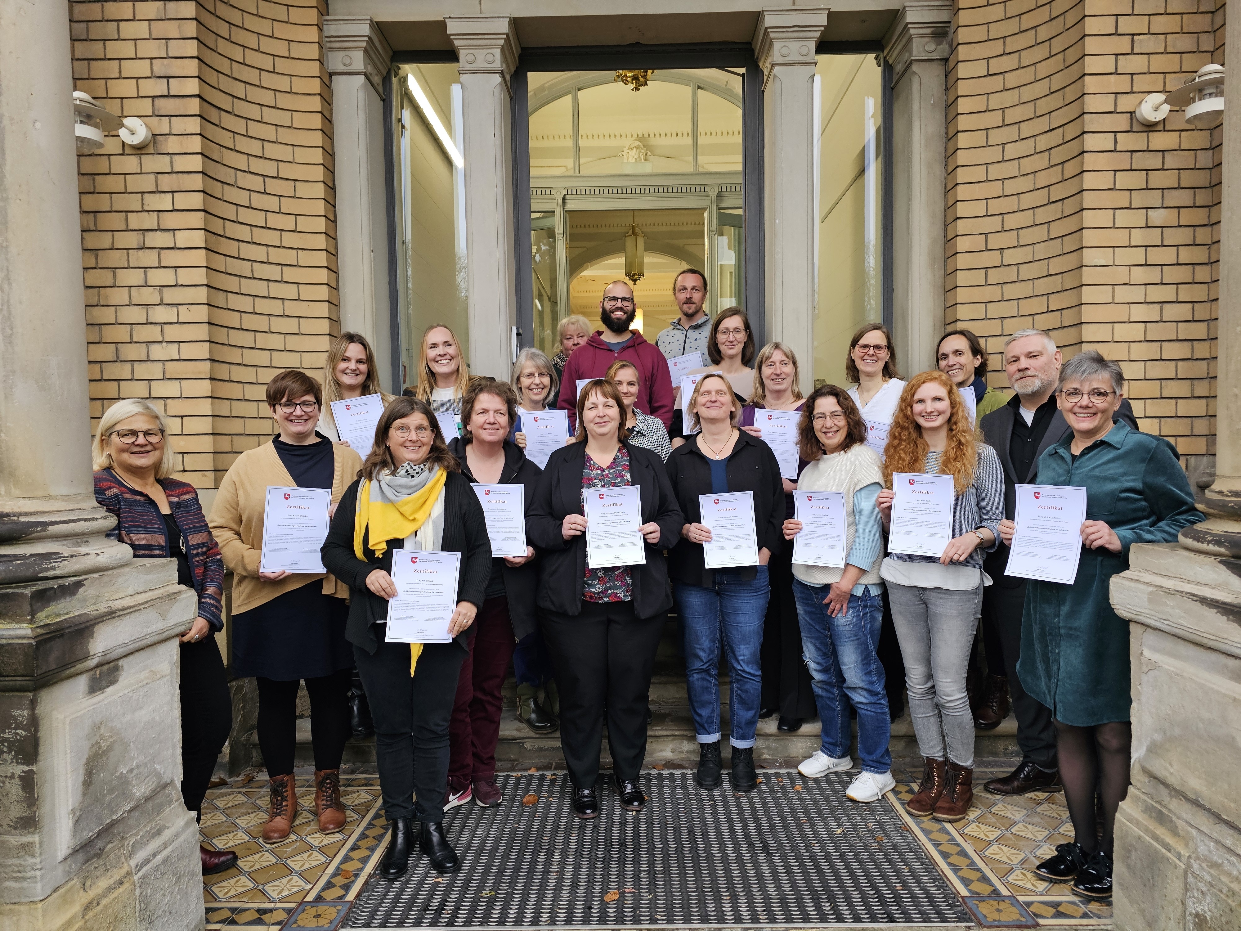 Über einen Zeitraum von drei Jahren haben 20 Kolleginnen und Kollegen der Landesbildungszentren für Hörgeschädigte Braunschweig, Hildesheim, Oldenburg und Osnabrück an einer sehr umfangreichen Qualifizierungsmaßnahme „Deutsche Gebärdensprache“ (DGS) teilgenommen.