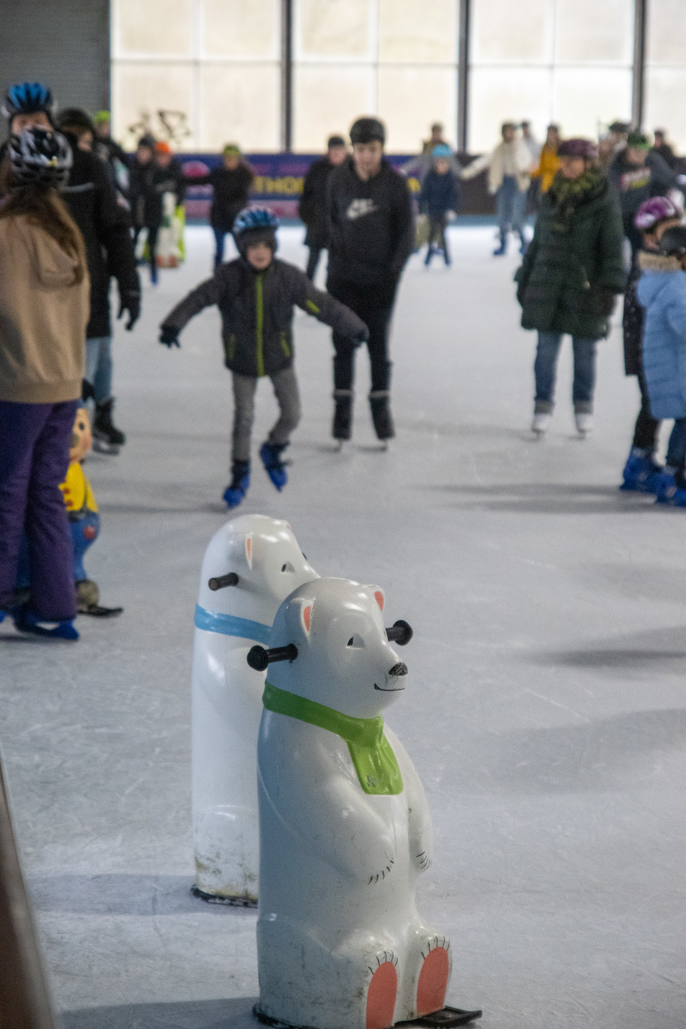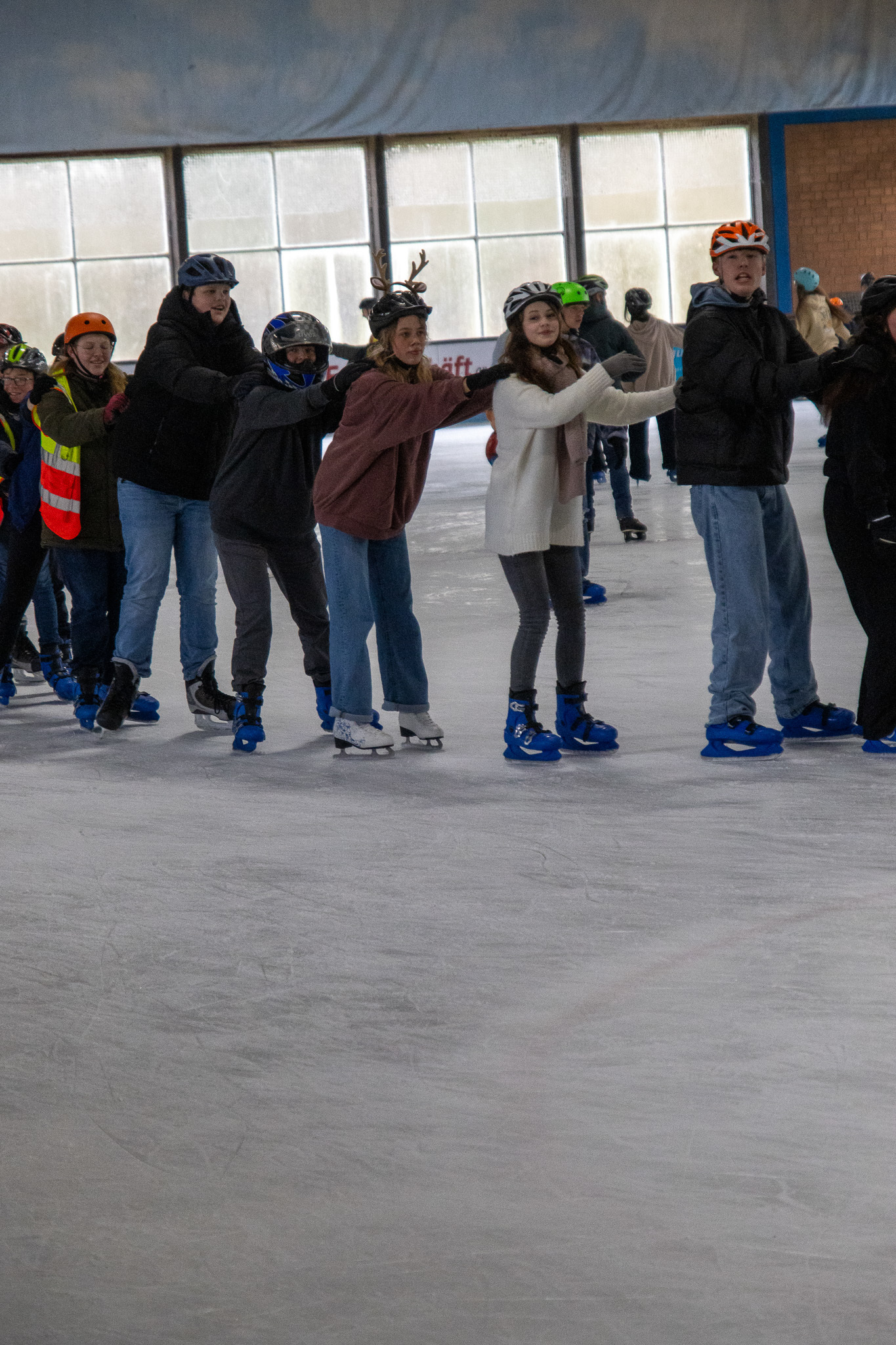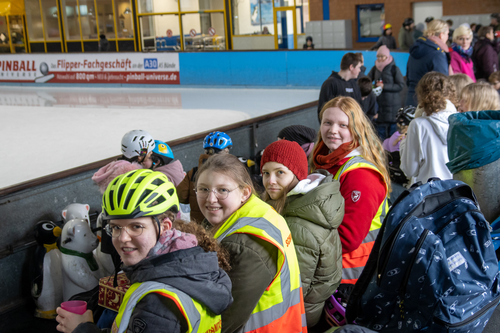 Schal, Wollmütze, Handschuhe und Helme, alles dabei, los geht’s! Gleich morgens sind wir mit den Bussen Richtung Eishalle gestartet. Angekommen ging es nach der Ausleihe der Schlittschuhe sofort aufs Eis. Was für eine Rutschpartie! Schnell kristallisierten sich echte Eisprinzen und -prinzessinnen heraus. Sehr beeindruckende Küren und Laufkünste wurden präsentiert, ganz toll! Großen Anklang fanden auch die Pinguine, die als Laufhilfe für die unerfahreneren Läuferinnen und Läufer fungierten. Erstaunlich war zu beobachten, wie schnell die Kinder lernten sich sicherer auf dem Eis zu bewegen. Richtig klasse und lobend zu erwähnen ist die großartige Hilfsbereitschaft der Kinder untereinander. Schnell war ein stützender Arm, eine helfende Hand zur Stelle, wenn sie gebraucht wurde. Der Zusammenhalt unserer Schulgemeinschaft hat sich an diesem Tag ganz besonders gezeigt. Und sollte doch ein kleiner Unfall passiert sein, waren unsere top für diesen Tag vorbereiteten Schulsanitäter vor Ort um schnelle Hilfe leisten zu können, danke! An dieser Stelle möchten wir auch ein riesiges Dankeschön an den Verein Hilfe für Hörgeschädigte aussprechen, die uns durch ihre Zuwendung diesen wunderbaren Vormittag ermöglicht haben. In der Halle mag es superkalt gewesen sein, aber die Stimmung und Laune an diesem Tag war heiß! Danke allen Organisatorinnen und Unterstützern für dieses (wieder einmal) tolle Gemeinschaftserlebnis.