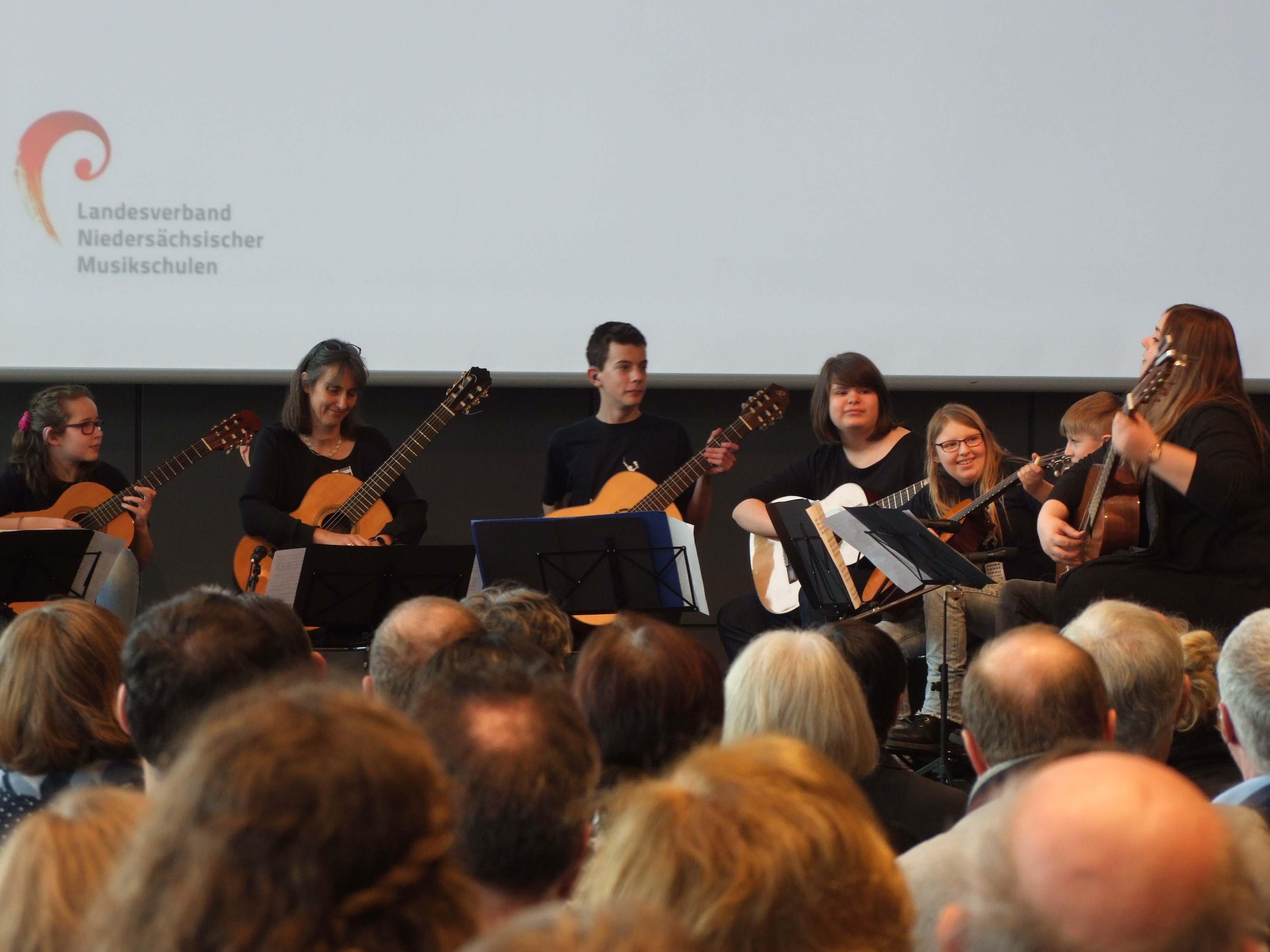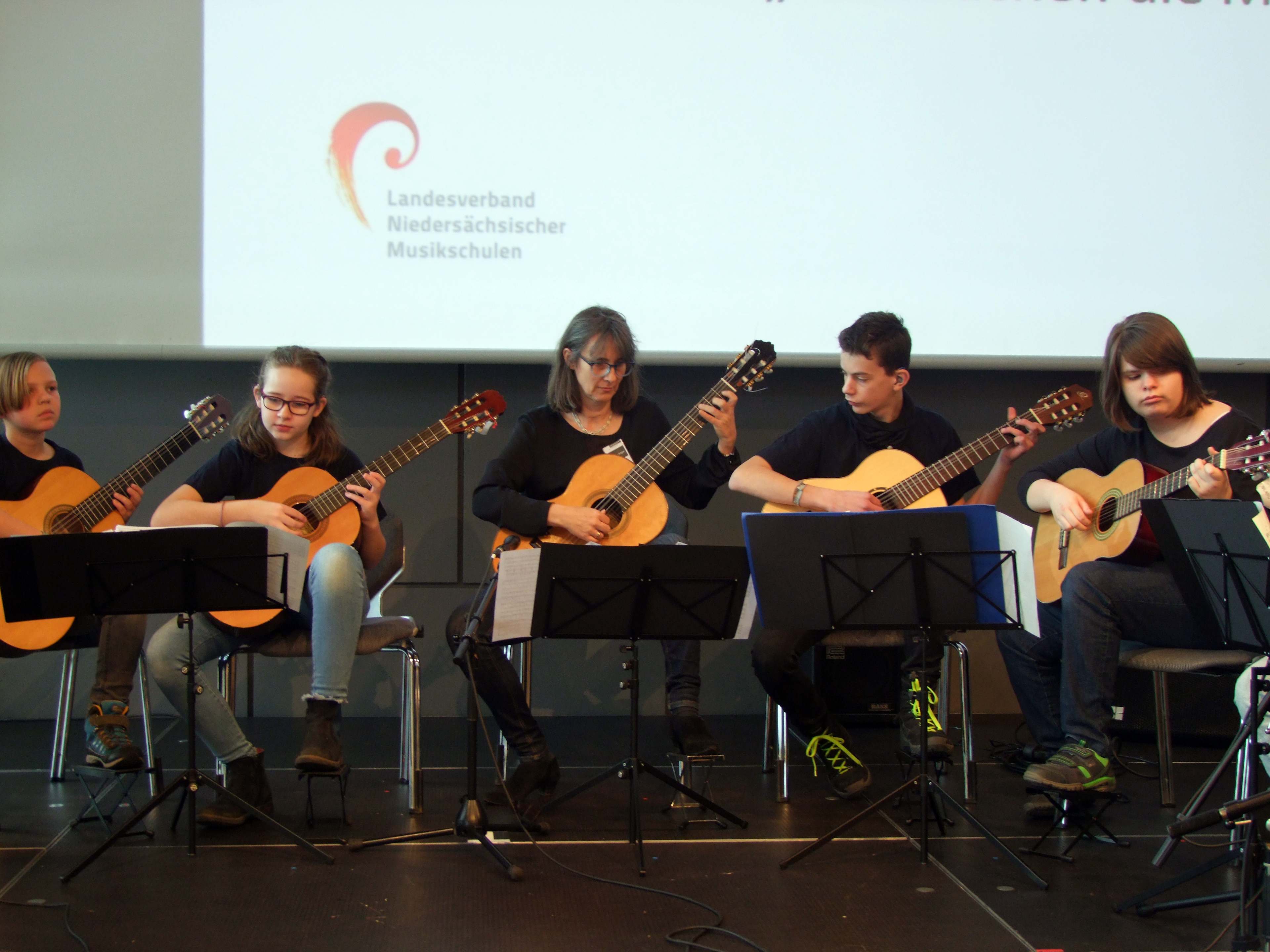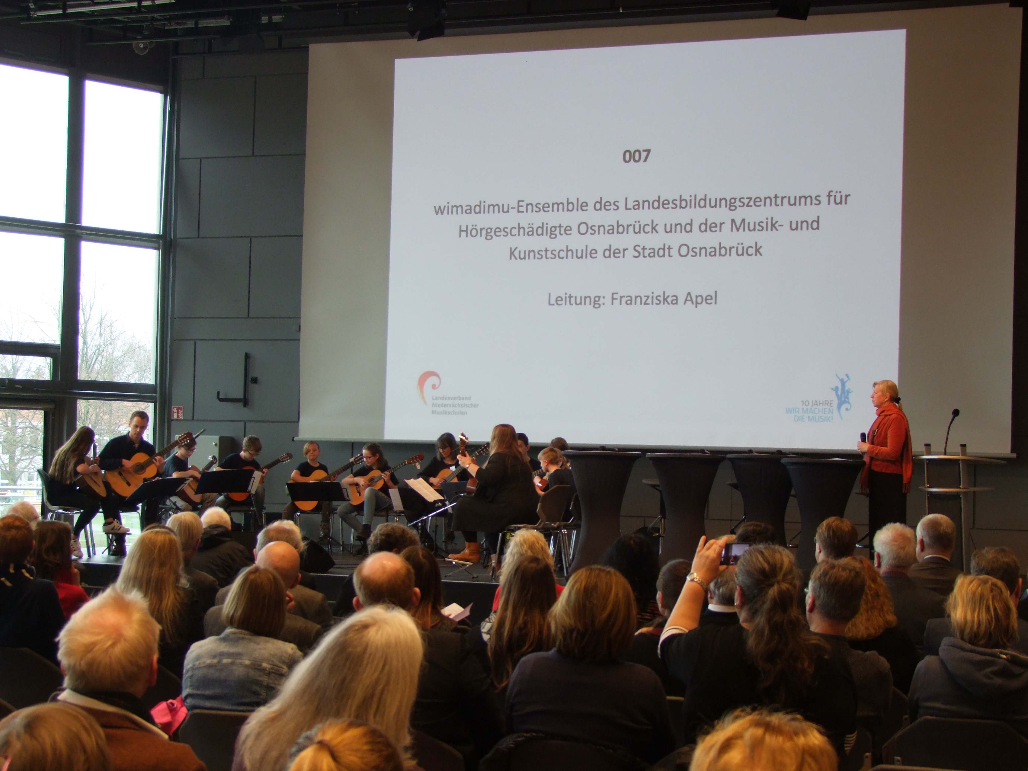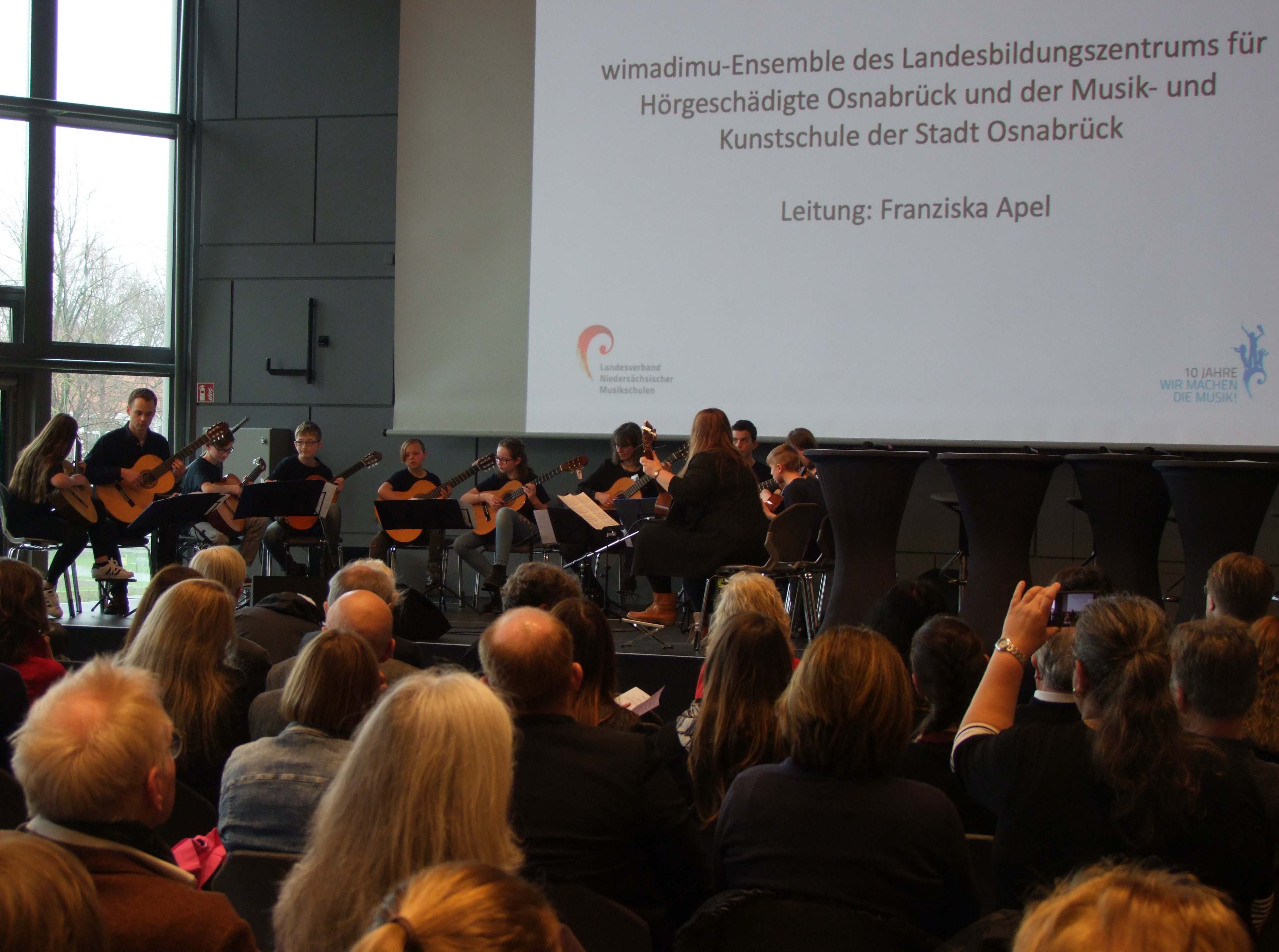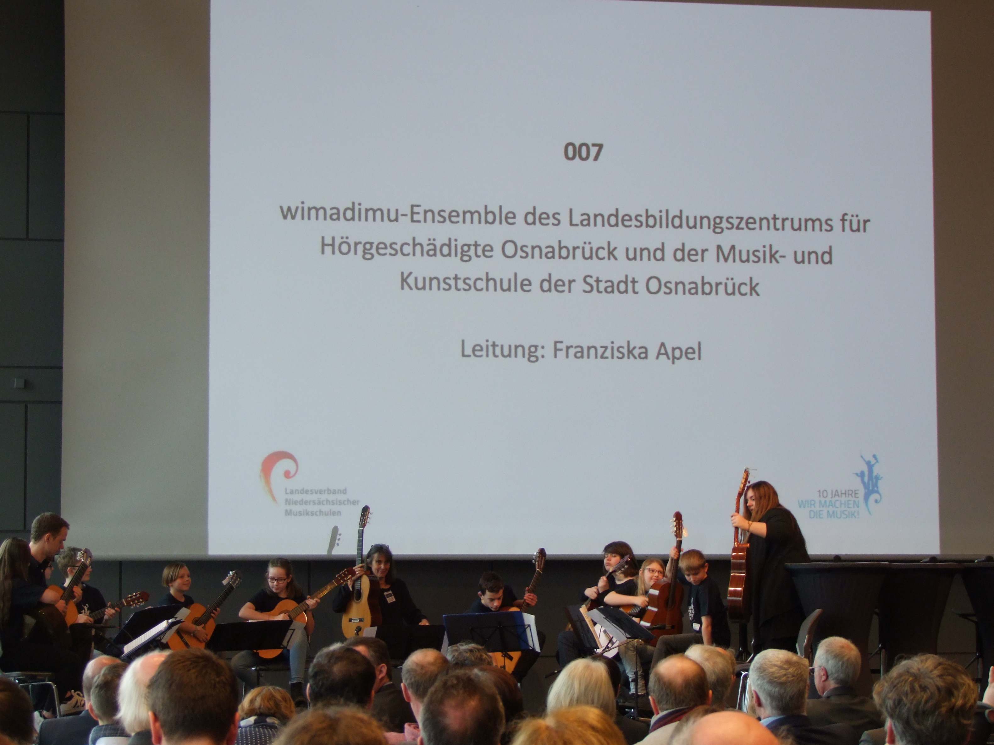 Am 14.03.2019 fand im Kongress-Saal der Osnabrück Halle der Festakt "10 Jahre Wir machen die Musik" statt. Vor zwei Ministern des Landes Niedersachsen und anderen Festgästen aus Kultur und Politik, hatte auch die Gitarren-AG des LBZH ihren Auftritt.