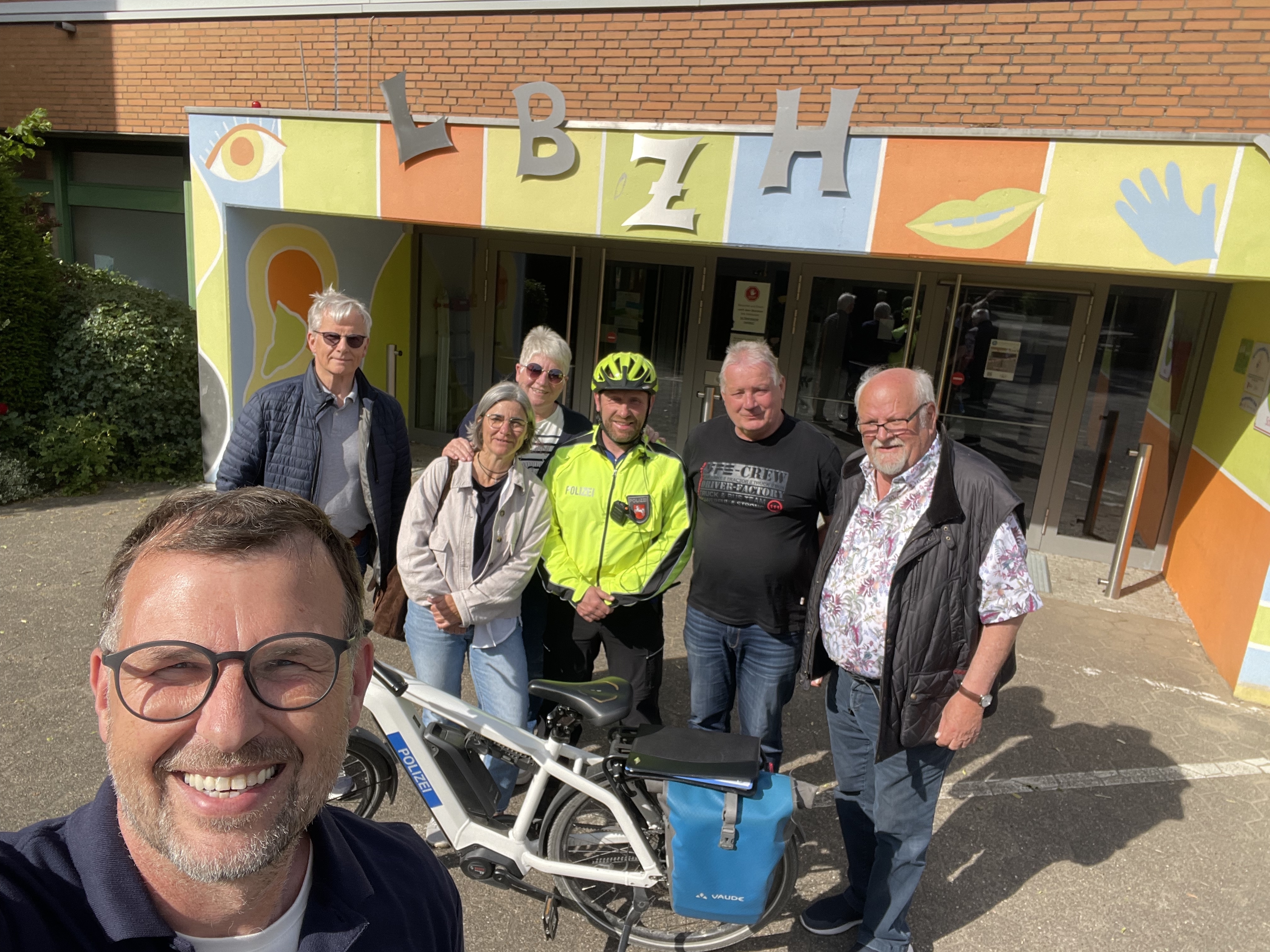 Zur Planung und Optimierung ihrer bisherigen und zukünftigen Zusammenarbeit haben sich auf Einladung des Fachbereichs Mobilität des Landesbildungszentrums für Hörgeschädigte Osnabrück Ende Mai Vertreterinnen und Vertreter der Verkehrswacht Osnabrück sowie des Präventionsteams der Polizeidirektion Osnabrück auf dem Gelände des LBZH zu einem informellen Austausch getroffen.