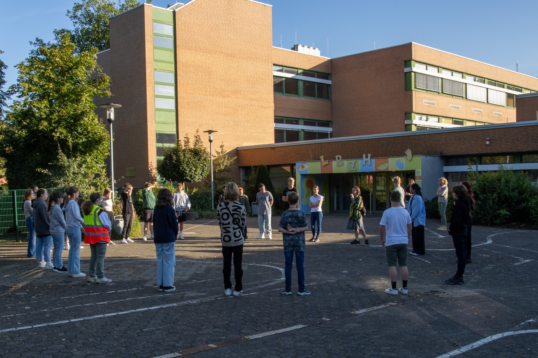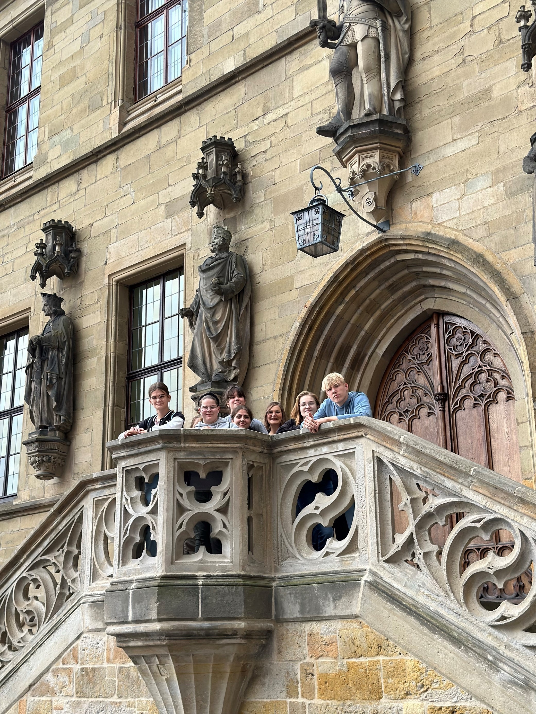 Am Dienstag und am Mittwoch sind wir gemeinsam in die Stadt gegangen. In der Stadt haben wir uns das Heger Tor, den Dom und das Rathaus mit seinem Friedenssaal angeschaut, dort wo vor 375 Jahren sich die Abgesandten trafen und den Friedensvertrag aushandelten. Unser Motto für diese Woche lautete: