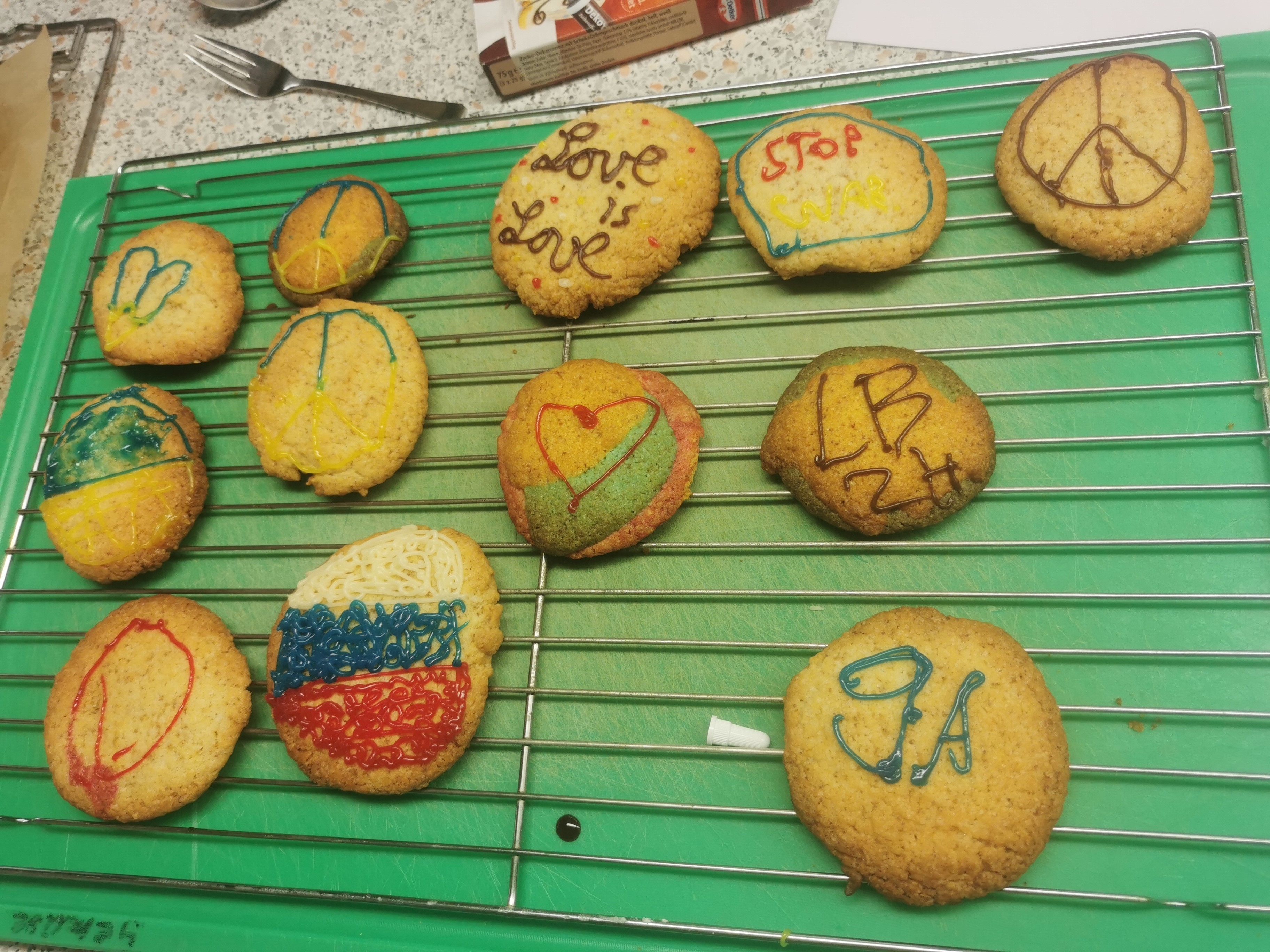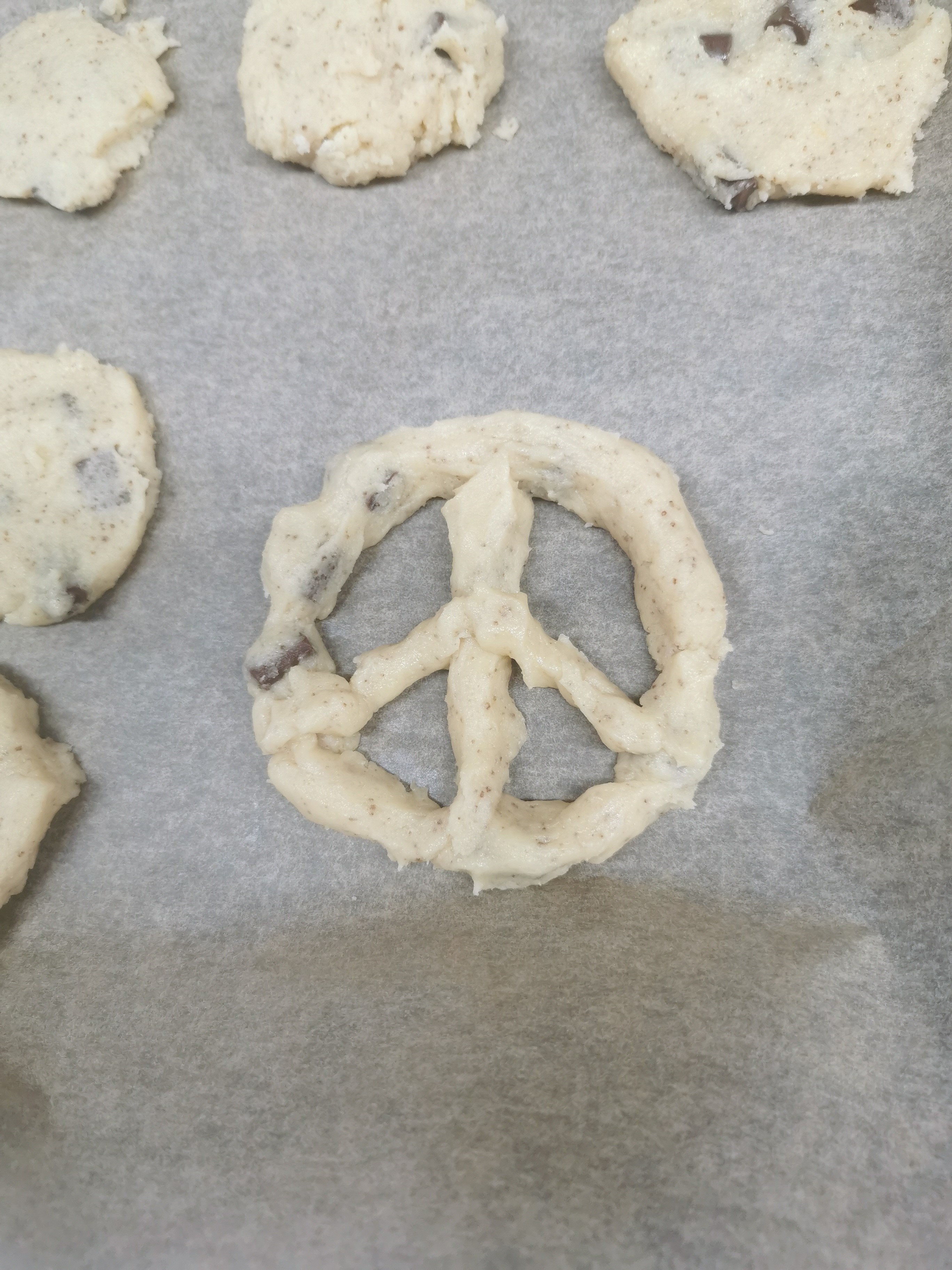 Daher haben wir dann auch Kekse mit dem „Peace Zeichen“ gebacken.