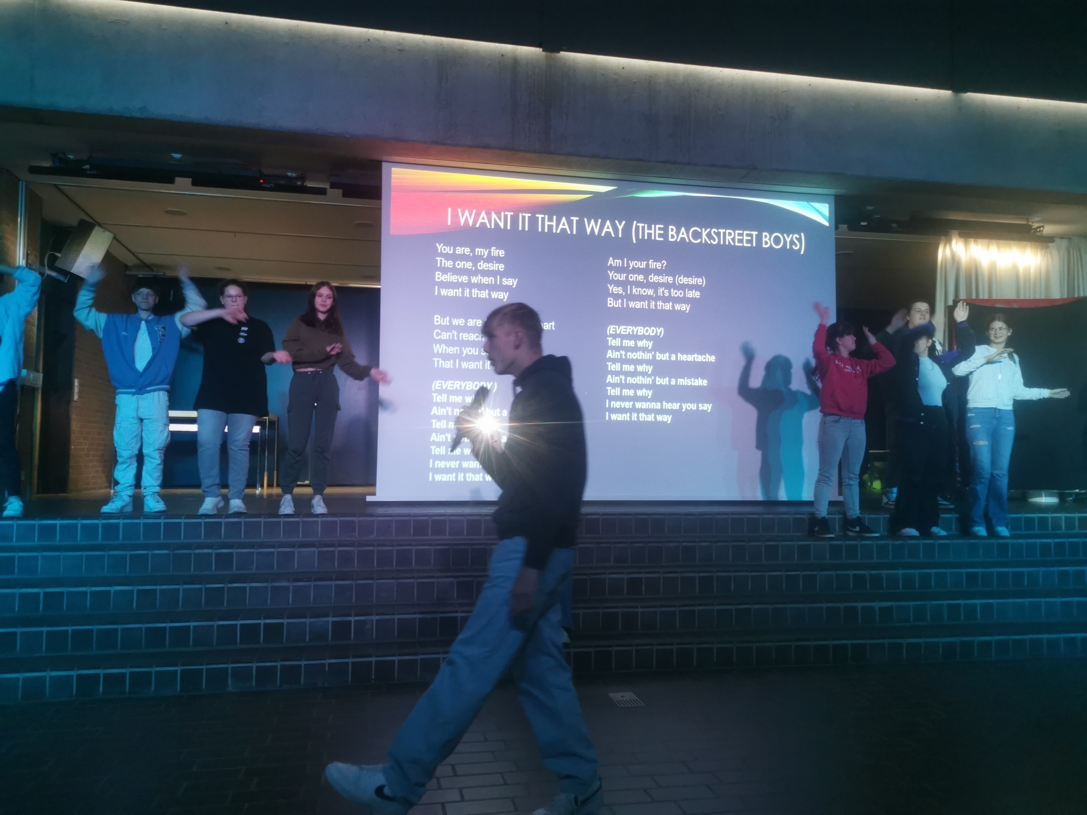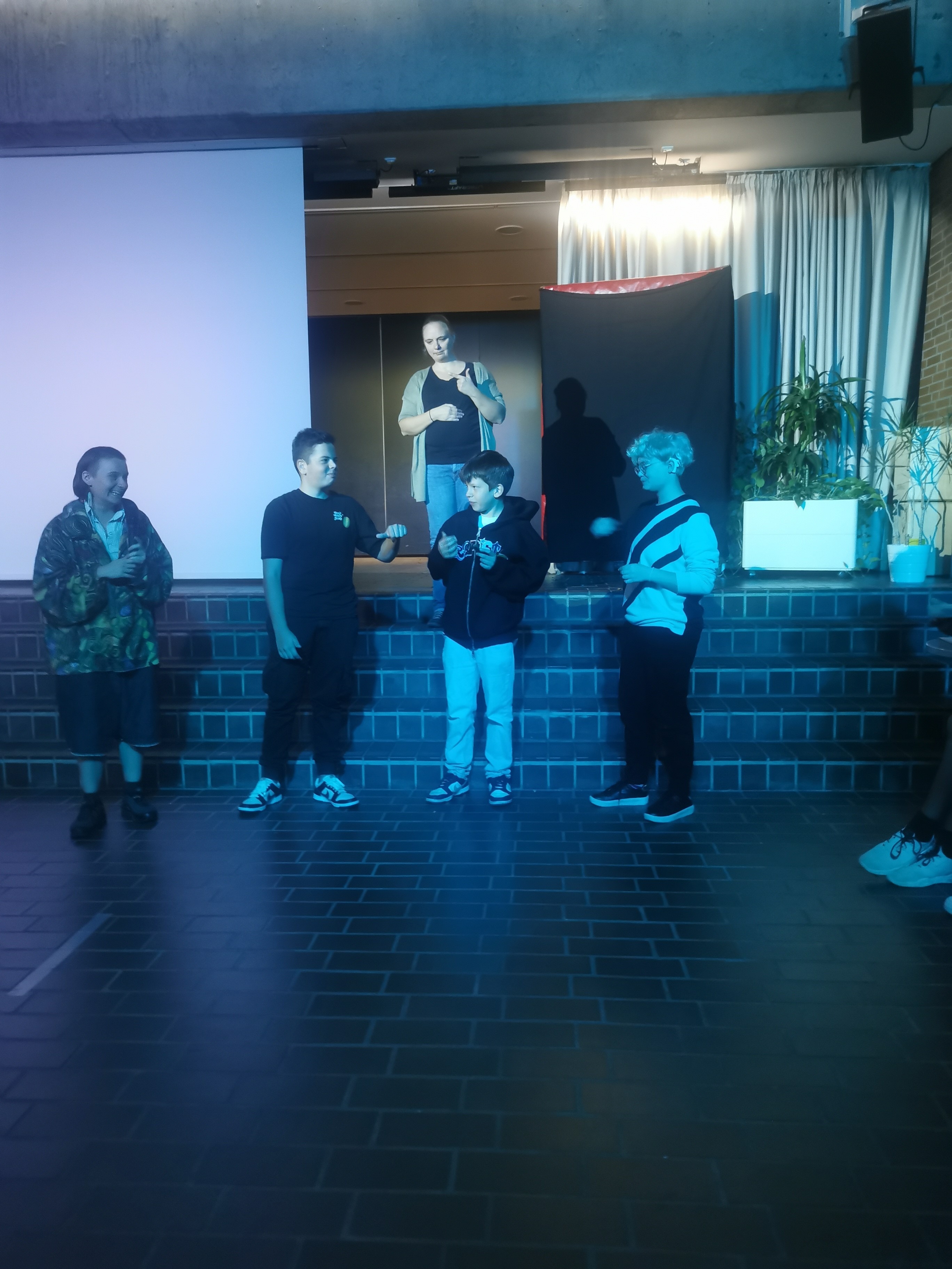Zum Ende der Präsentation kam eine Quiz Show der Klasse 9a, ein paar Geschichten und ein Song von der 9c.