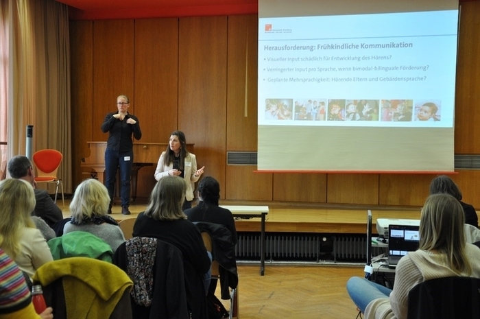 Prof. Dr. Barbara Hänel-Faulhaber (Uni Hamburg) referiert zu „Frühkindliche Kommunikation und Sprachentwicklung mit DGS“