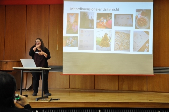 Sandra Gogol stellt Unterrichtsbeispiele aus ihrem Hausgebärdensprachkurs vor