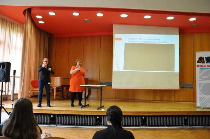 Dana Apel und Marion Jansen (LBZH Hildesheim) im Vortrag „Bimodal-Bilingualer Unterricht in der Sekundarstufe I“