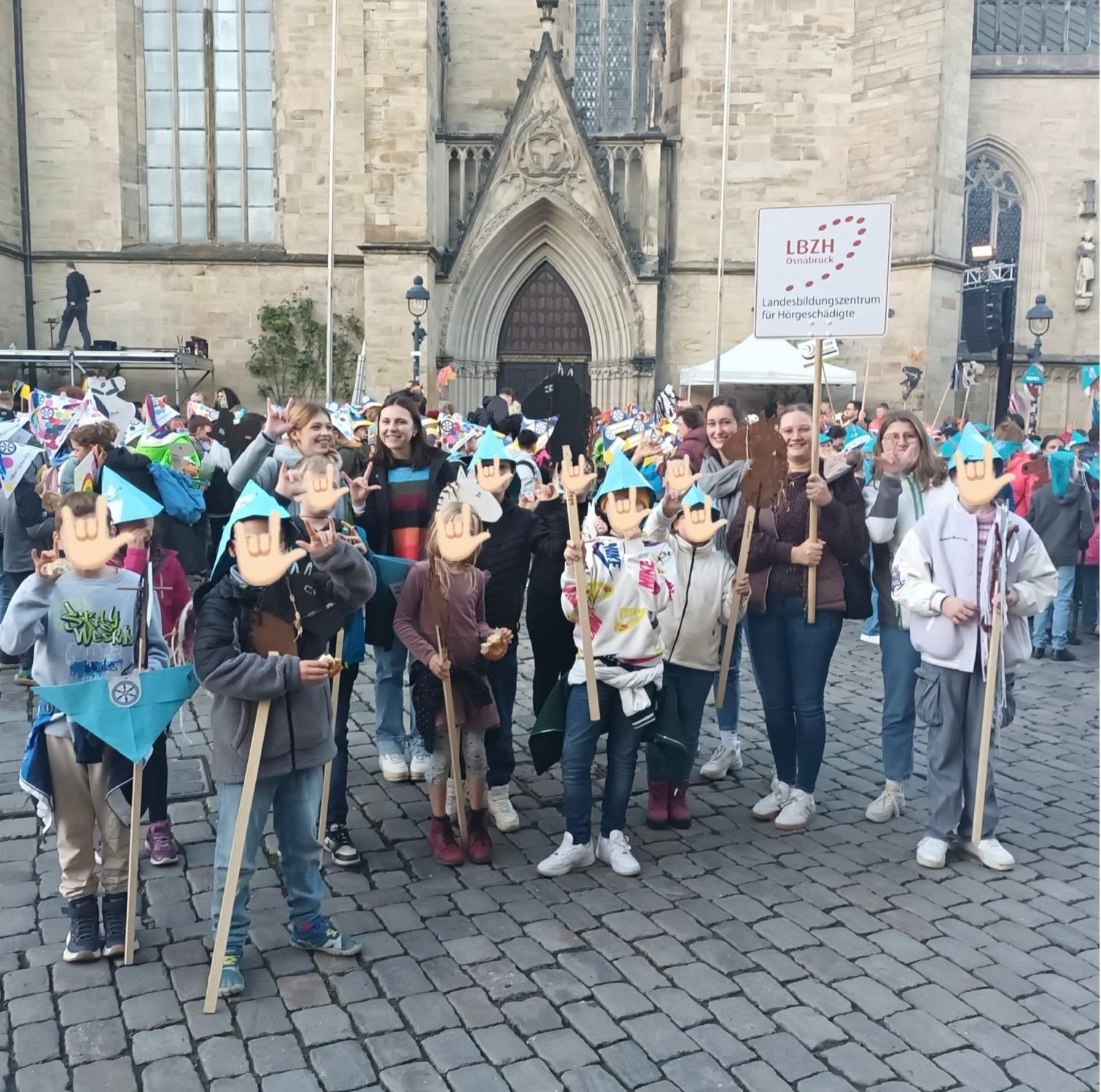 Am 24. Oktober fand das traditionelle Steckenpferdreiten der Friedensstadt Osnabrück statt. Alle Viertklässler der Stadt treffen sich jedes Jahr im Oktober mit ihren Steckenpferden für einen Umzug durch die Stadt, der sie zum Platz vor dem Rathaus führt. Dort bekommen alle Kinder von der Oberbürgermeisterin eine süße Brezel überreicht. Und auch unsere 4. Klassen mit ihren Lehrerinnen waren dabei und haben das Spektakel sichtlich genossen. Mit einer tollen Show voller Musik, Tanz, Theater und Feuer und einem abschließendem großen Feuerwerk feiern die Osnabrücker den Westfälischen Frieden.