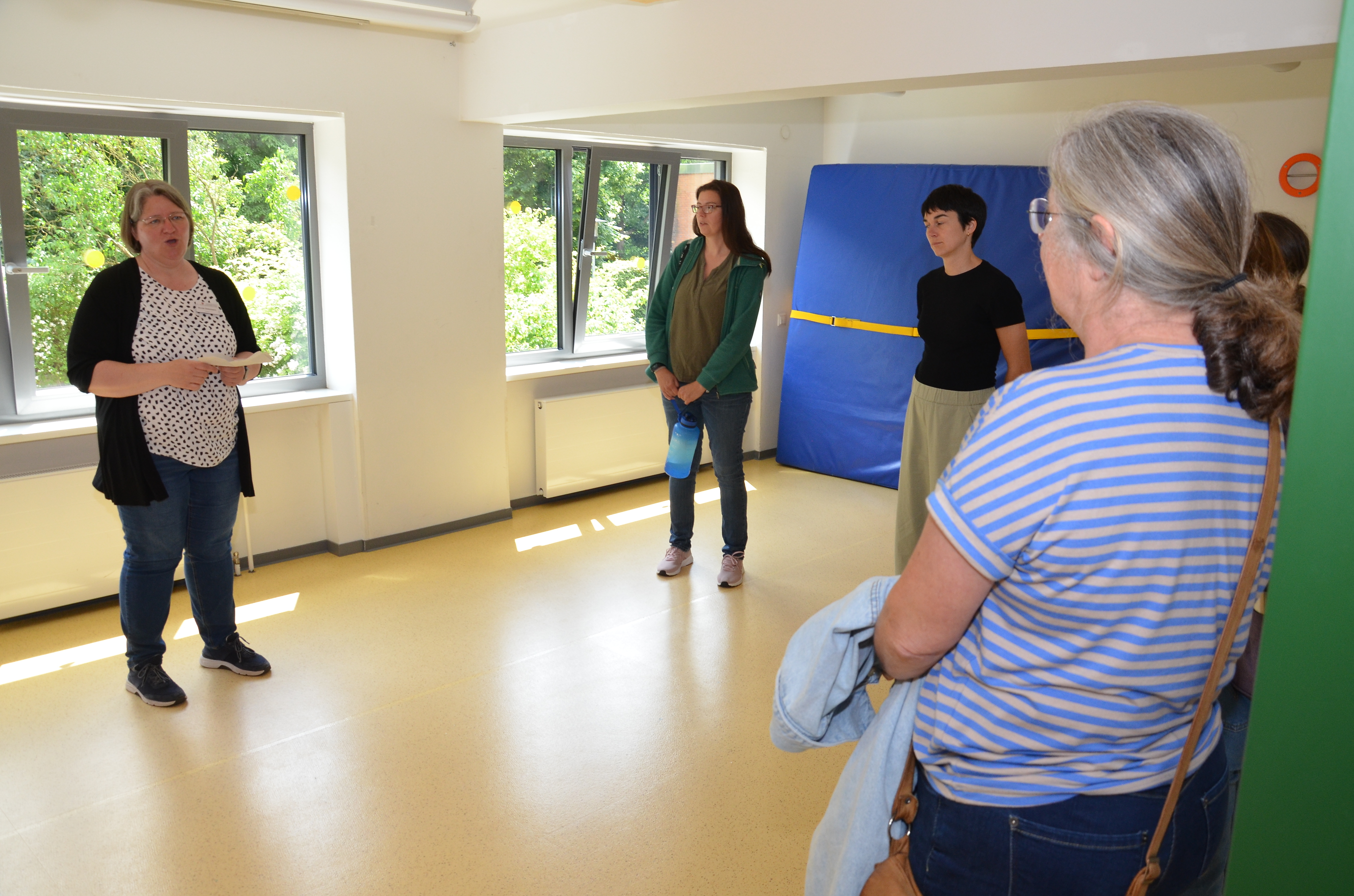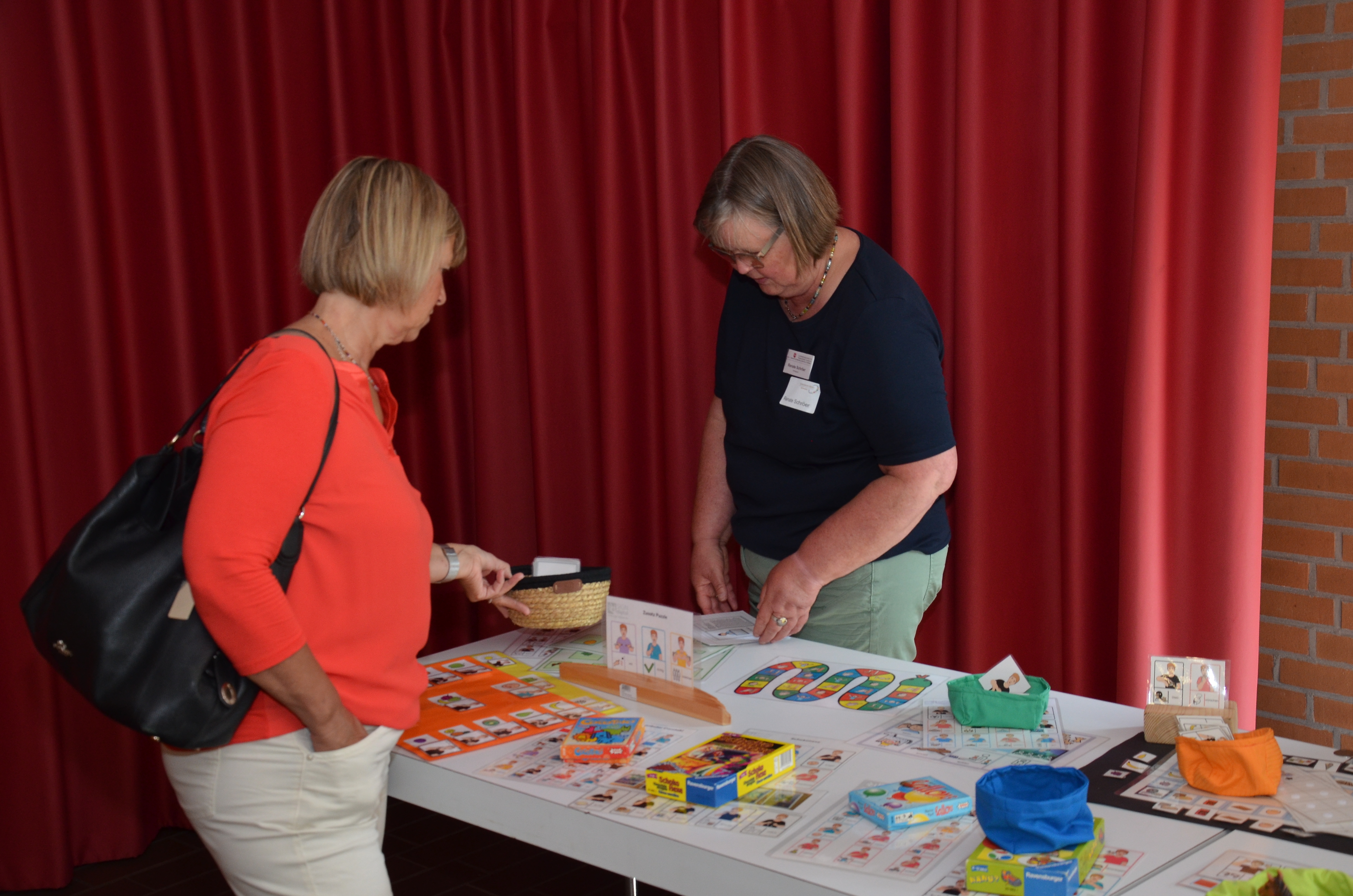 Am 02.06.2025 fand zum zweiten Mal ein Treffen der Teams der HPK Hören der LBZH in Niedersachsen statt. Dazu kamen Erzieherinnen/Erzieher, Logopädinnen, Psychologinnen und Hörgeschädigtenpädagoginnen der HPK Hören aus Braunschweig, Hildesheim und Oldenburg in das LBZH Osnabrück. In der Aula fand zunächst ein kurzer Vortrag zum Thema „Deutsche Gebärdensprach und Unterstützte Kommunikation im HPK Hören“ statt. Anschließend konnten die Teilnehmerinnen und Teilnehmer an verschiedenen Stationen Material zu dem Thema kennen lernen und untereinander über Möglichkeiten der Verwendung sprechen.