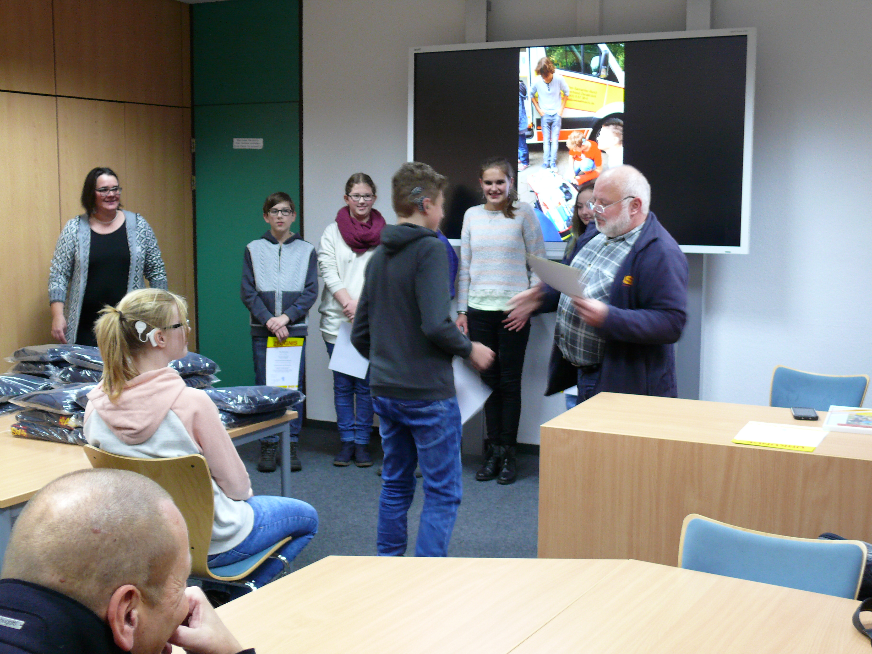Urkundenübergabe an unsere frischgebackenen Schulsanitäter